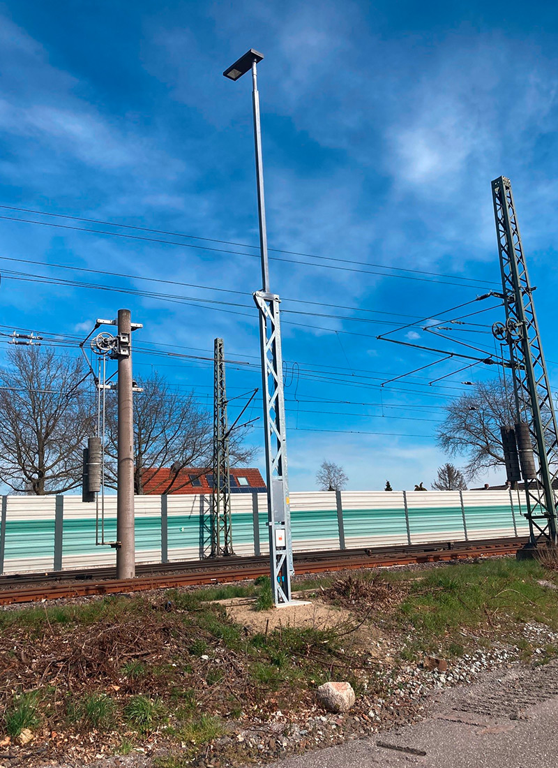 Die Maststellung der nGgB erfolgte neben dem auszuleuchtenden Gleisfeld sowie in allen Gassen. Die Beleuchtungsanlage wird aus der Unterverteilung am Gleisfeld gespeist.